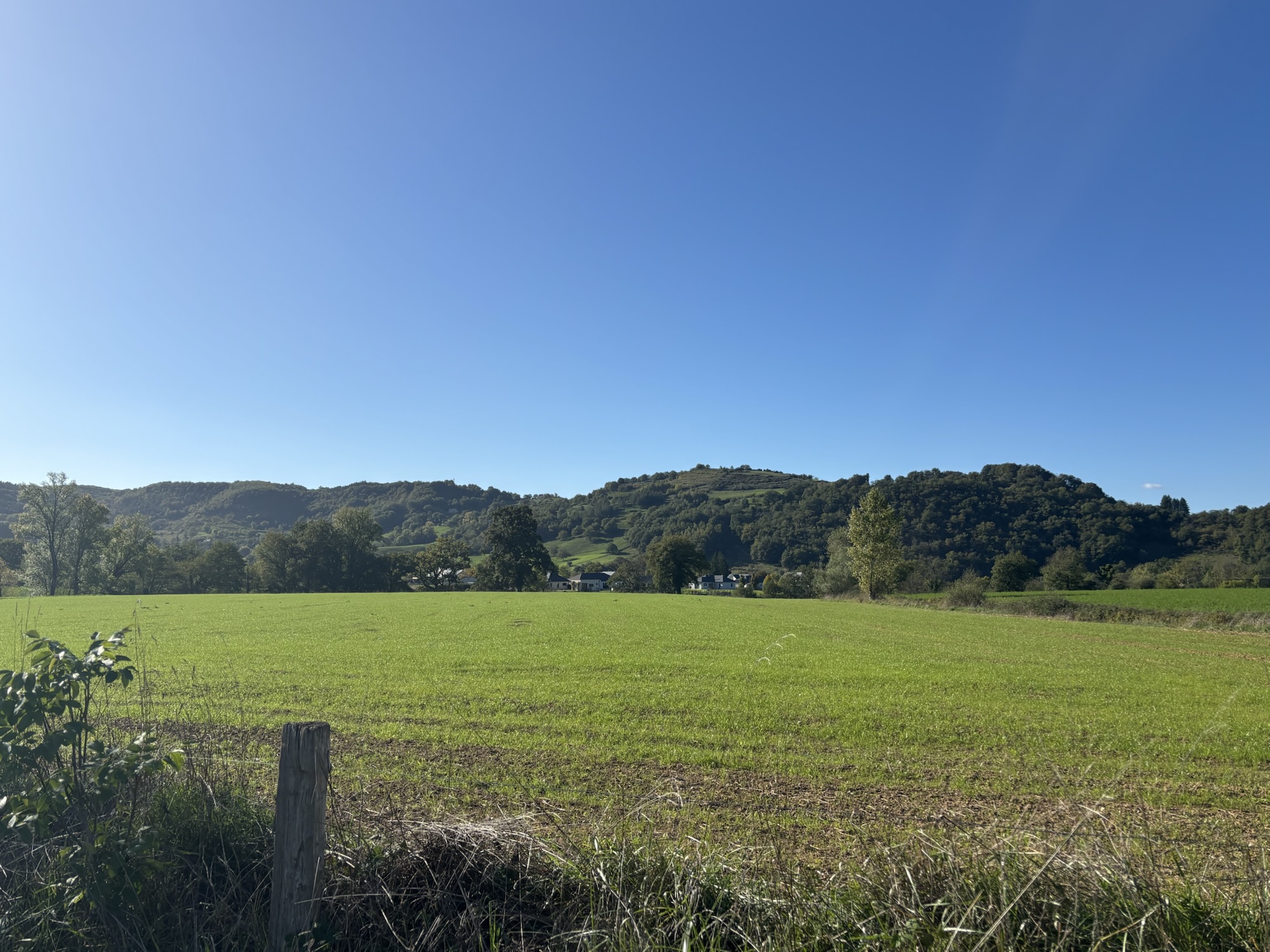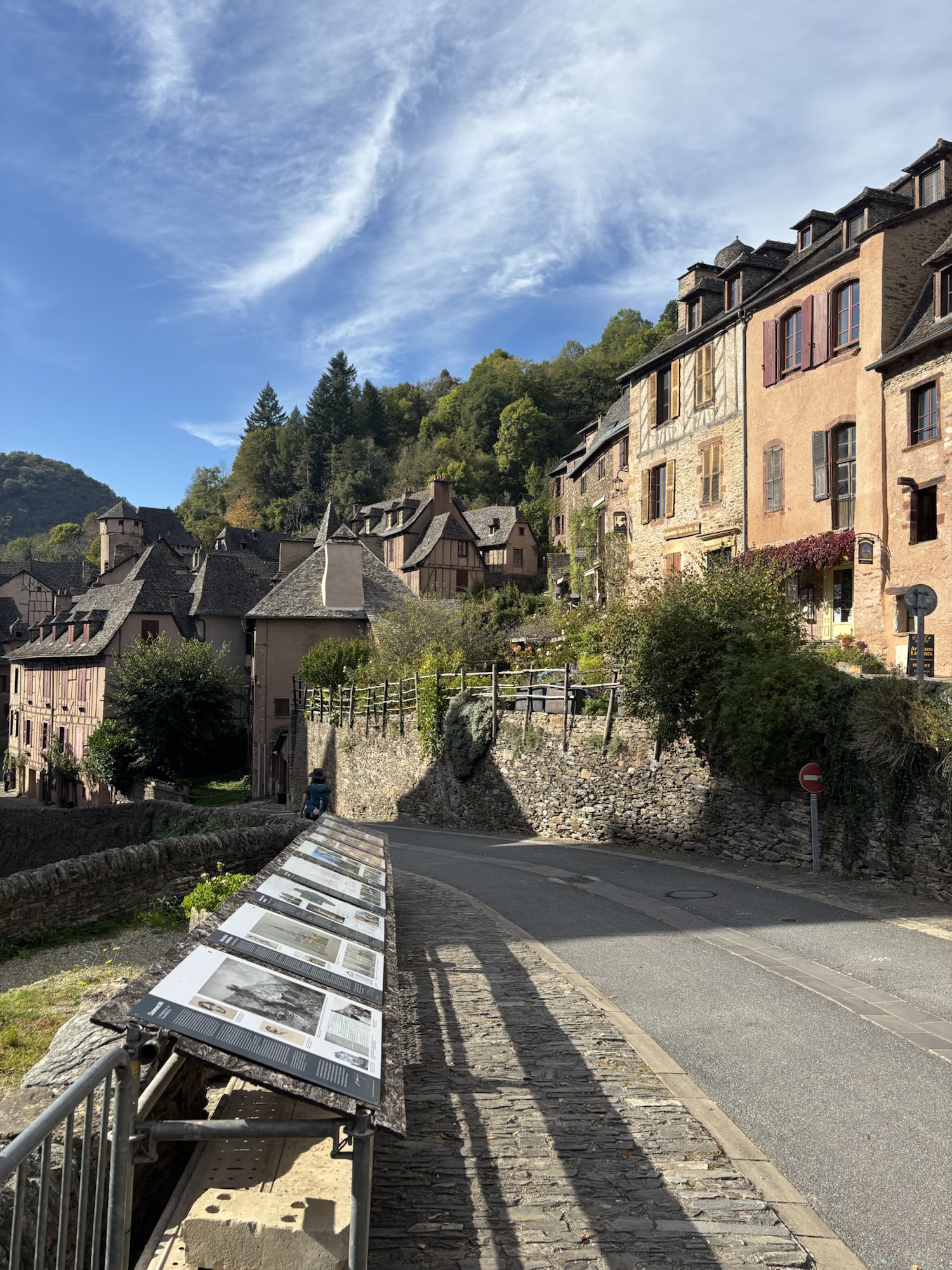 I dag kravlede jeg ud af Conques, og det var ikke lige til. Stejlt og langt. Godt det ikke regnede. Resten af turen var på landevej og efter 23 kilometer som helt bestemt var hårde…