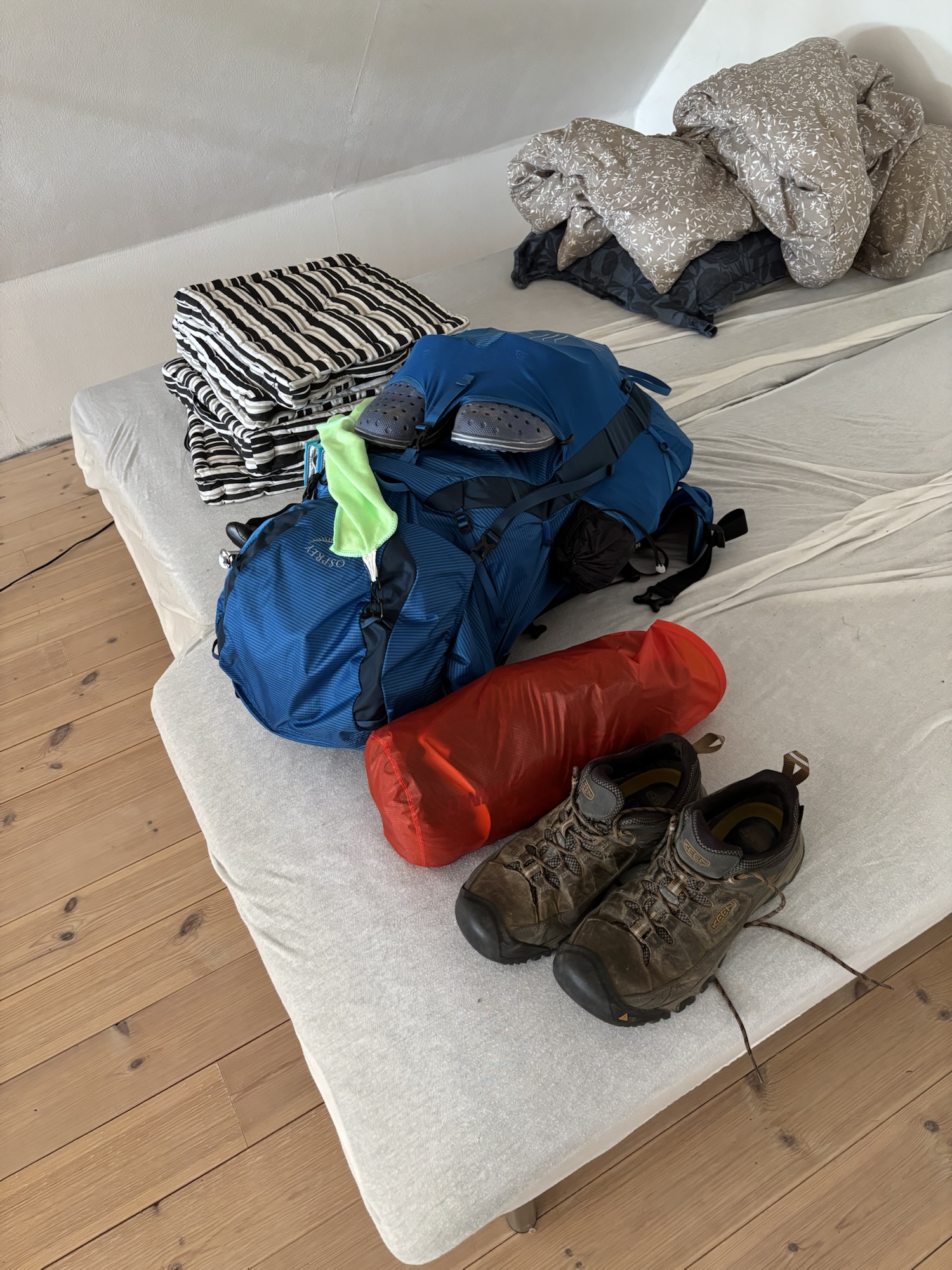 Jeg har forsøgt på denne tur at holde det så let som muligt. Så vi ender på ca. 5,5 kilo. Dog har jeg ikke regnet toiletgrej mv. med.